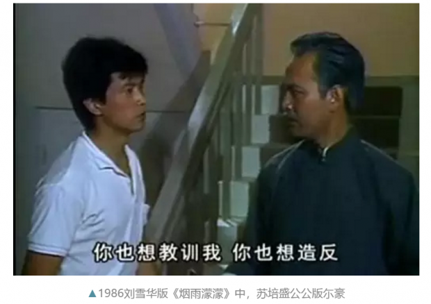 《烟雨濛濛》(《情深深雨蒙蒙》)里的“黑豹子”陆振华就是以暴力压制实施精神控制的父权代表。他不允许任何人忤逆他,即使是顶一句嘴都不可以。故事开头的第一个高潮,是来要生活费的依萍语气不够恭敬卑微地对拿到的少得不可思议的钱数发出质疑,陆振华便恼羞成怒到挥鞭相向,尓豪意意思思劝上两句说:“依萍不听话,骂她两句就是了,何必一定要动鞭子呢?”这被陆振华一句话撅回来:“你也想教训我,想造反么?!”后面雪姨全家集体旁观到看不下去,但也不敢上前多说一句。