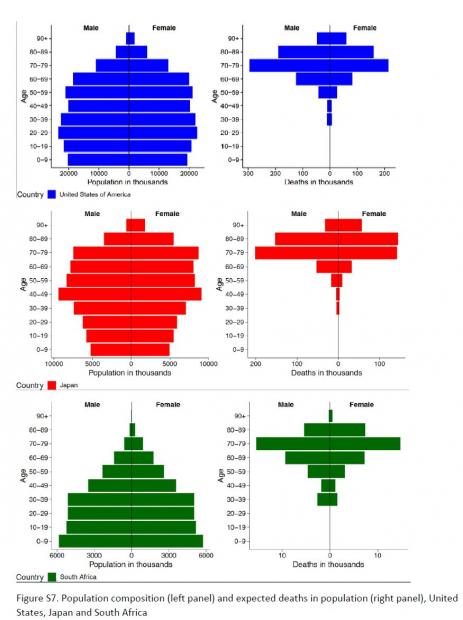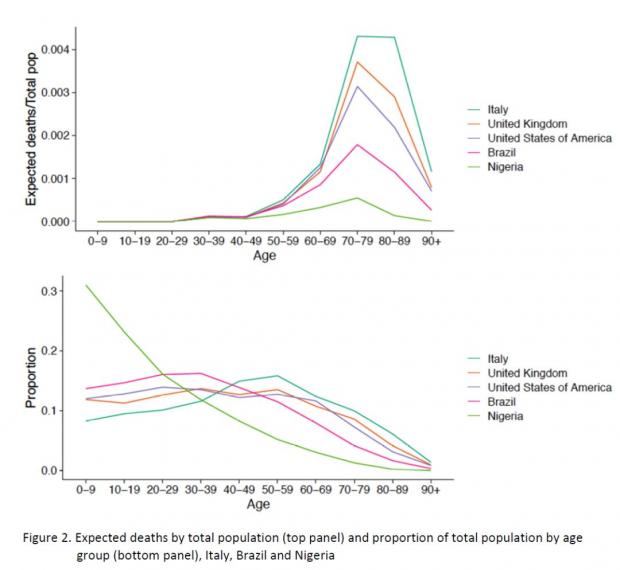 由此,研究者得出结论,虽然较为贫穷的国家的医疗系统不太发达,但是由于其人口相比富裕的国家而言更为年轻,因此受此次疫情的影响可能会相对较轻。当然在这样的国家中,整体健康状况较差以及诸如结核病等其他传染病的存在也会增加年轻群体感染新冠肺炎的风险。