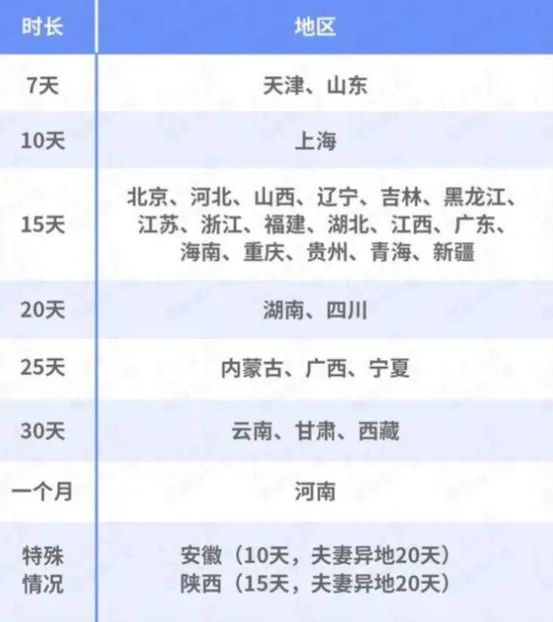 我国目前各地陪产假时长概览(图源健康时报客户端)