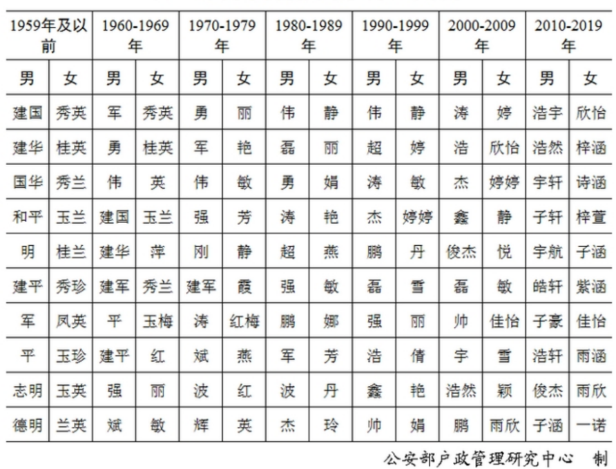资料来源:公安部 《二〇二〇年全国姓名报告》