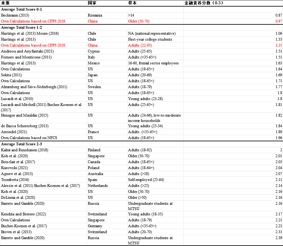 表2. 基于"金融素养三大问题"(Big Three)的跨国比较
