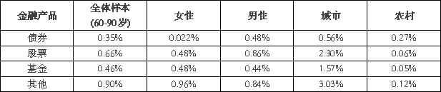 表1. 中国老年人个人金融产品持有度